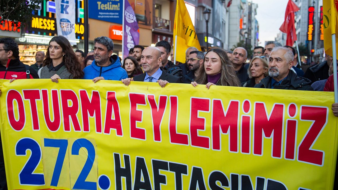 İzmir Büyükşehir Belediye Başkanı Tunç Soyer, Kanun Hükmünde Kararnamelerle (KHK) kamudan ihraç edilen eğitimci ve akademisyenler için düzenlenen oturma eylemine katıldı. Eğitim emekçilerinin görevlerine iade edilmesi talebiyle 272 haftadır sürdürülen eylemde konuşan Başkan Soyer, “Asla yalnız değilsiniz” dedi.