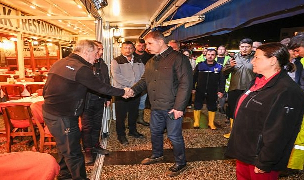 İzmir Büyükşehir Belediye Başkanı Dr. Cemil Tugay, sağanak yağışın yaşamı olumsuz etkilediği Foça’da İZSU ve itfaiye ekipleri başta olmak üzere İzmir Büyükşehir Belediyesi birimlerinin çalışmalarını inceledi. Başkan Tugay, mağduriyet yaşayan esnaf ve yurttaşları ziyaret ederek eksikliklerin giderilmesi için talimat verdi. Büyükşehir ekipleri, ilçede 197 araç ve 350 personelle yaşamı normale döndürmek için var gücüyle çalışıyor.